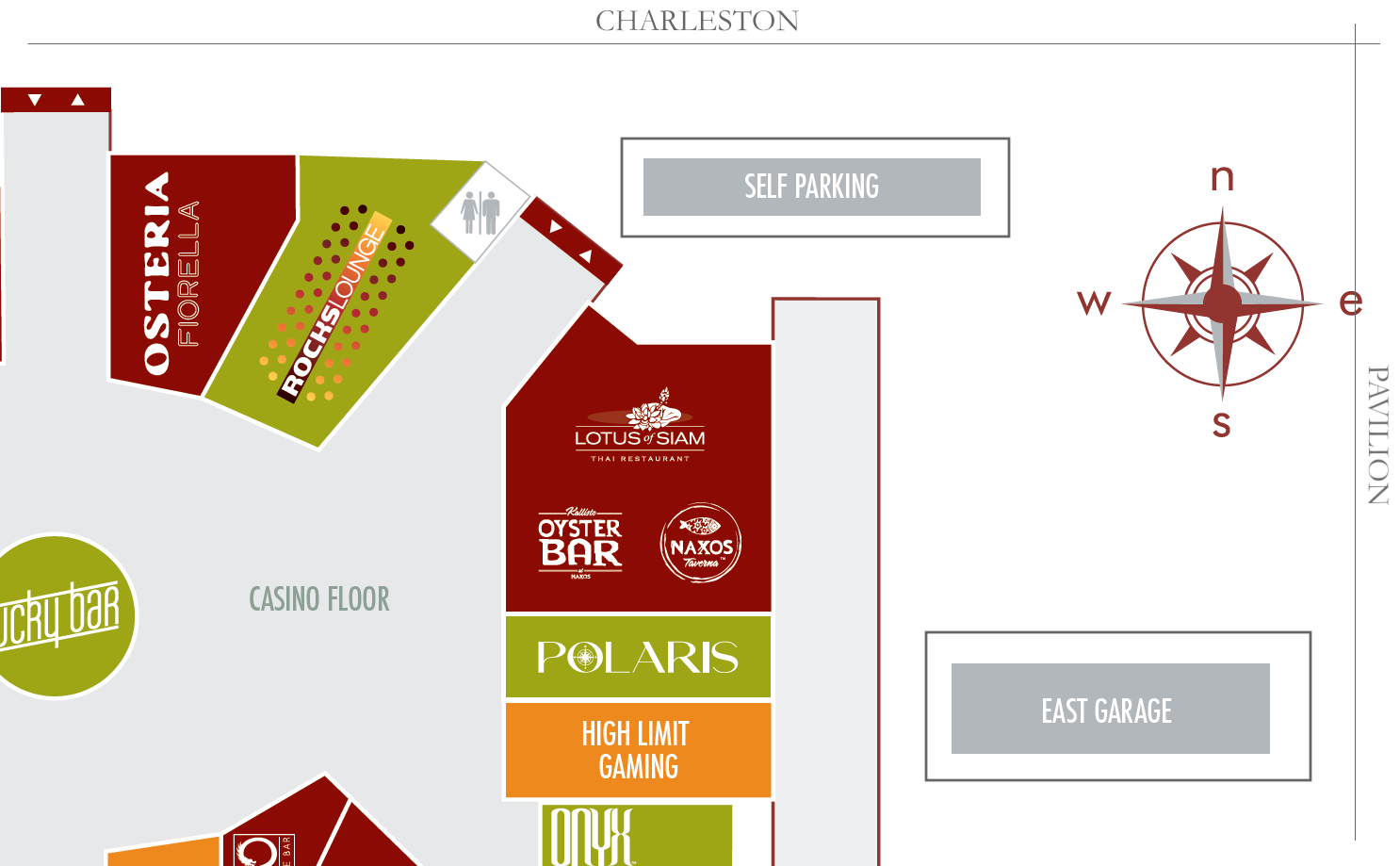 See the two areas highlighted for parking, the closest is the lot on the corner of Charleston and Pavilion.